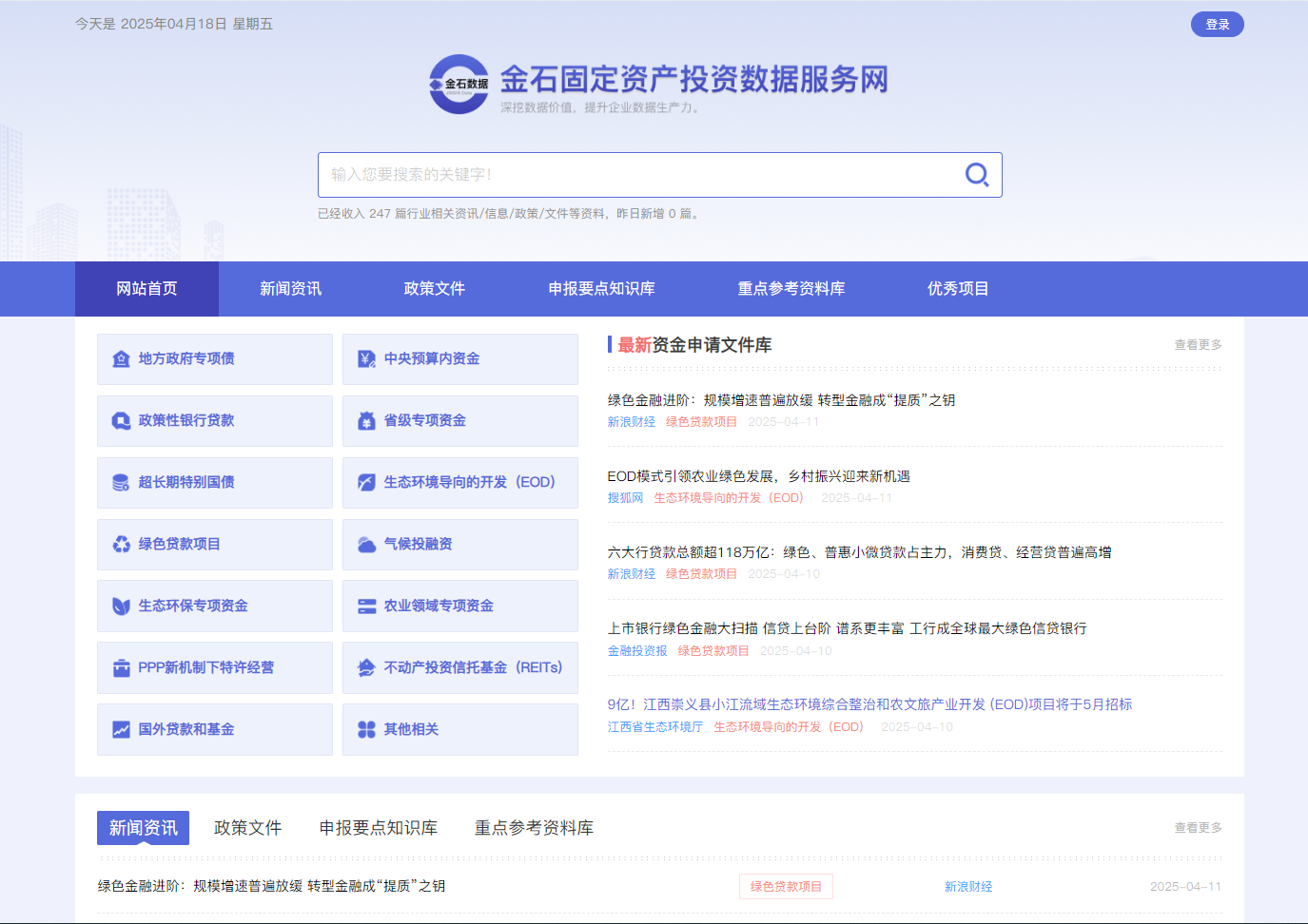 我公司開發(fā)的“金石固定資產(chǎn)投資數(shù)據(jù)服務(wù)網(wǎng)”已完成部署,目前正在試運行,歡迎大家登錄體驗,同時對網(wǎng)站提出寶貴的意見和建議。 點擊體驗:http://www.goldstonedata.com